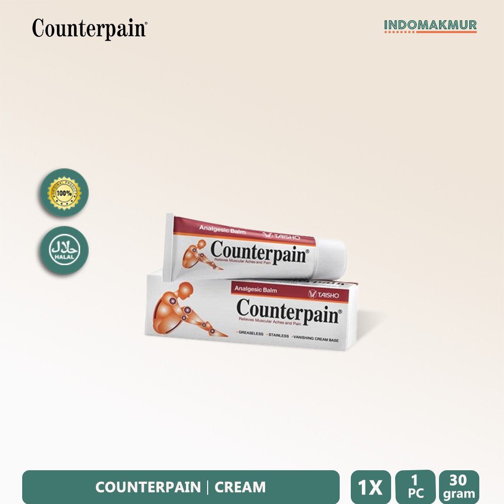 Counterpain Cream Membantu meredakan nyeri pada otot, sendi, nyeri, keseleo dan encok. Komposisi: Counterpain Cream : Metil Salisilat 102 mg, Eugenol 13.6 mg, Mentol 54.4 mg. Oleskan 3-4 kali di bagian yang sakit Cara Pakai: Oleskan 3-4 kali di bagian yang sakit PERHATIKAN ! Wajib menambahkan extra bubble wrap atau kardus saat membeli produk, supaya paket lebih aman dalam pengiriman. Jika terjadi kerusakan pada saat pengiriman, namun tidak menambahkan extra bubble wrap / kardus, maka admin tidak akan membantu proses klaim ke pihak marketplace / ekspedisi. https://shopee.co.id/product/81557228/29623549596