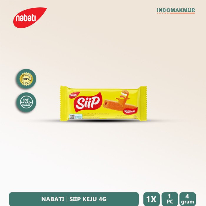 Kapanpun kamu menginginkan cemilan yang praktis, Nabati Siip Richeese selalu hadir untukmu. Nabati Siip Richeese adalah cemilan yang praktis dan lezat dalam bentuk stik bite-size. Dengan sentuhan bumbu keju yang berlimpah dan teksturnya yang renyah, setiap gigitan akan membuat kamu nagih! Cocok untuk dinikmati di segala momen di setiap aktivitasmu. Tersedia dalam beberapa varian: – NABATI SIIP JAGUNG 4G – NABATI SIIP KEJU 4G PERHATIKAN ! Wajib menambahkan extra bubble wrap atau kardus saat membeli produk, supaya paket lebih aman dalam pengiriman. Jika terjadi kerusakan pada saat pengiriman, namun tidak menambahkan extra bubble wrap / kardus, maka admin tidak akan membantu proses klaim ke pihak marketplace / ekspedisi. https://shopee.co.id/product/81557228/29623549596