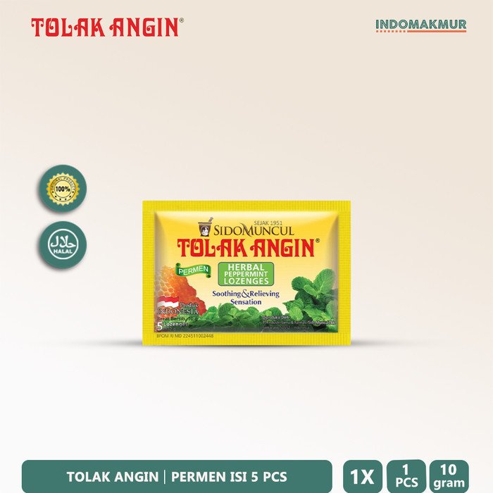 SIDOMUNCUL TOLAK ANGIN PERMEN ISI 5 PCS Sido Muncul Permen Tolak Angin merupakan permen yang cocok dinikmati saat sedang dalam perjalanan. Sido Muncul Permen Tolak Angin bermanfaat untuk melegakan, menghangatkan, dan menenangkan tenggorokan. Rasanya yang hangat berasal dari berbagai kandungan rempah di dalamnya dan madu yang menambahkan sensasi manis alami. PERHATIKAN ! Wajib menambahkan extra bubble wrap atau kardus saat membeli produk, supaya paket lebih aman dalam pengiriman. Jika terjadi kerusakan pada saat pengiriman, namun tidak menambahkan extra bubble wrap / kardus, maka admin tidak akan membantu proses klaim ke pihak marketplace / ekspedisi. https://shopee.co.id/product/81557228/29623549596